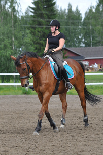Monesti laatuhevoset (kuten tietenkin tässä tapauksessa :) ) eivät ole aina yksinkertaisimpia ratsastettavuudeltaan ja näin on Mersunkin kanssa. Mersu ei ole ratsastuskoulun oppilaisen ykkössuosikki mm. pompottavan ravin takia, eikä Merano itsestään juoksentele eteenpäin ja on varsin herkkä kädelle (hyppää kilpailuissakin suoralla kumikuolaimella...!) ja ratsastajien painolle. Virhesuodatinkaan ei iästä huolimatta ole asettunut vaikka tarhakaveri Lepsin tasolle. Laukka nousee jos se osataan nostaa, mutta keventämällä eteenpäin saa vain aikaan ravia ja joskus jopa keskiravin tapailua.